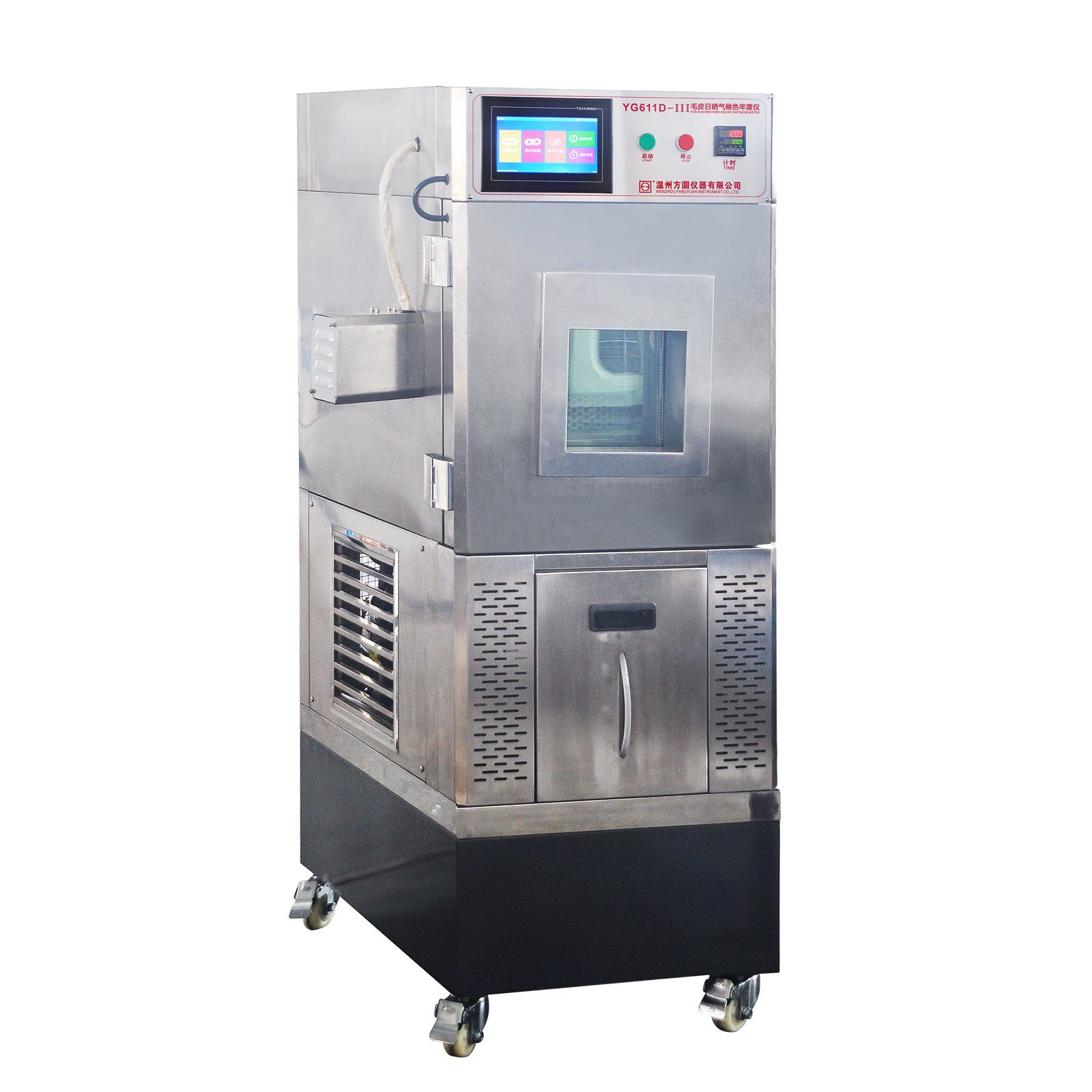 YG611D-III毛皮日曬氣候色牢度儀可以將試樣24小時曝露在模擬日光條件下,試樣經(jīng)受的連續(xù)曝曬效果遠超室外曝曬,因而可以加速獲得試驗結(jié)果。